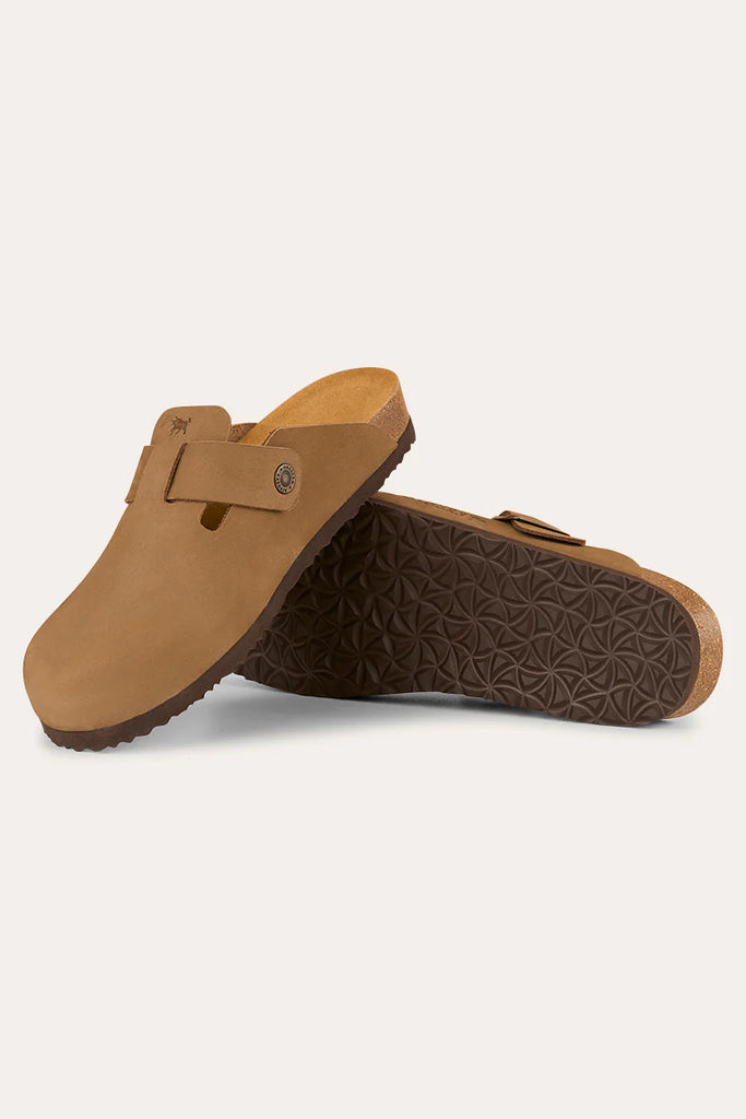 Each pair is crafted from premium full-grain nubuck leather, hand-shaped and assembled to ensure lasting quality and a refined finish. Complete with signature Ringers Western brass hardware, the Byron Clog offers a timeless, hard-wearing aesthetic that transitions seamlessly from work to weekend.